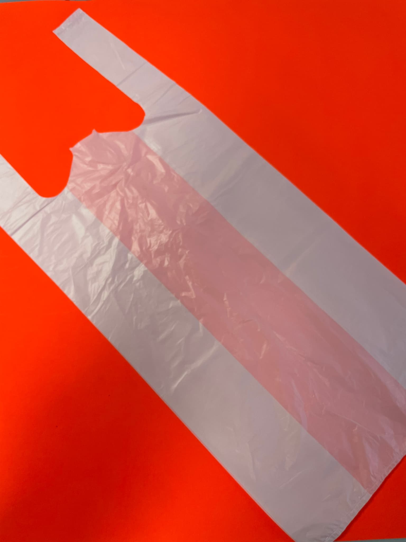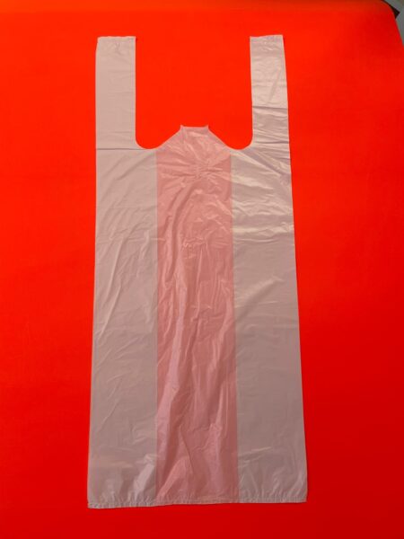 Bolsa 80×90 camiseta. Bolsa de polietileno, alta densidad de asa blanca.