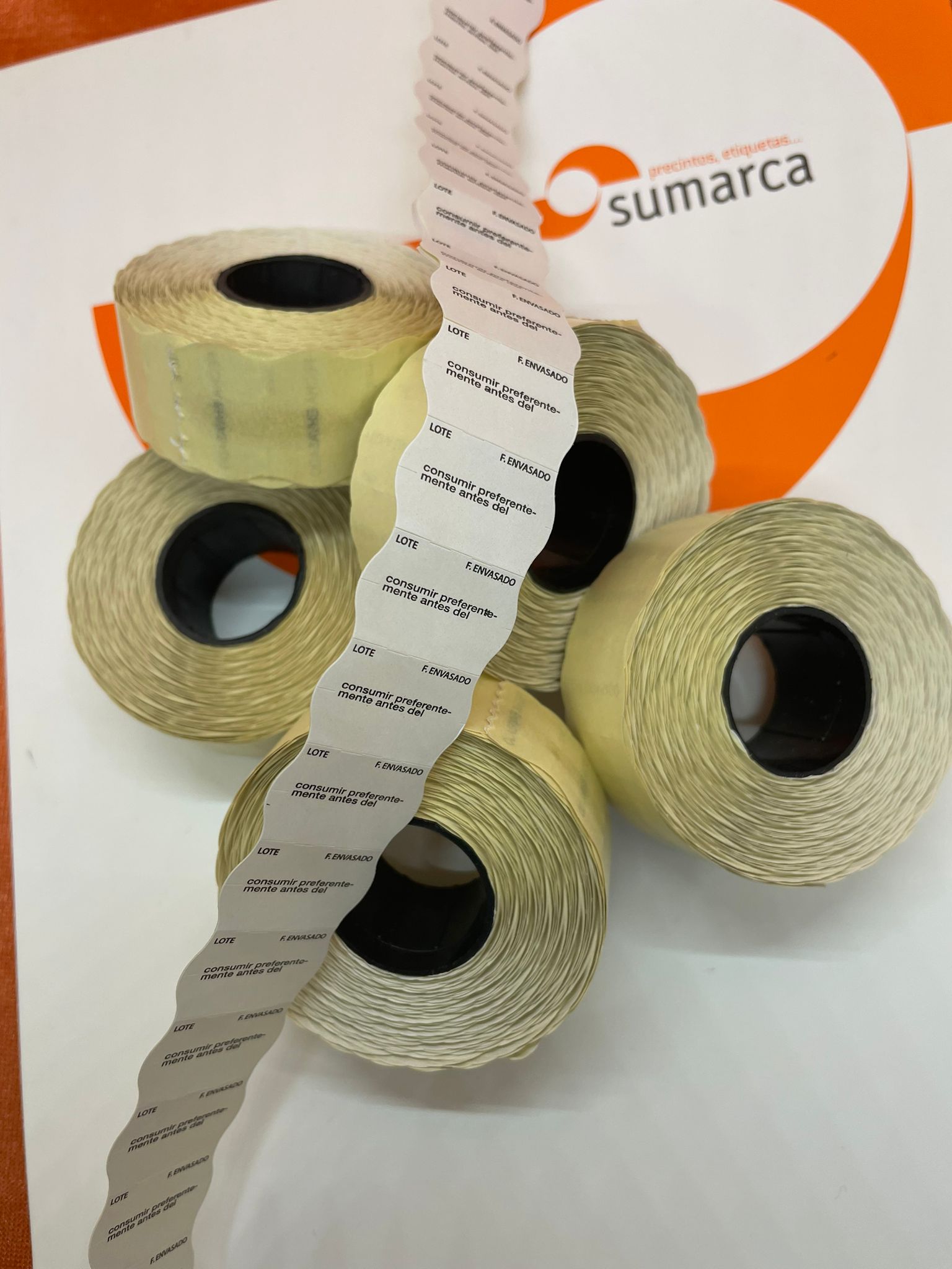 Rollos Etiquetas Marcaje Blanca Imp. Lote / Fecha de Envasado / Consumir pref..