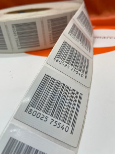 Etiquetas adhesivas código de barras seguridad-radiofrecuencia.