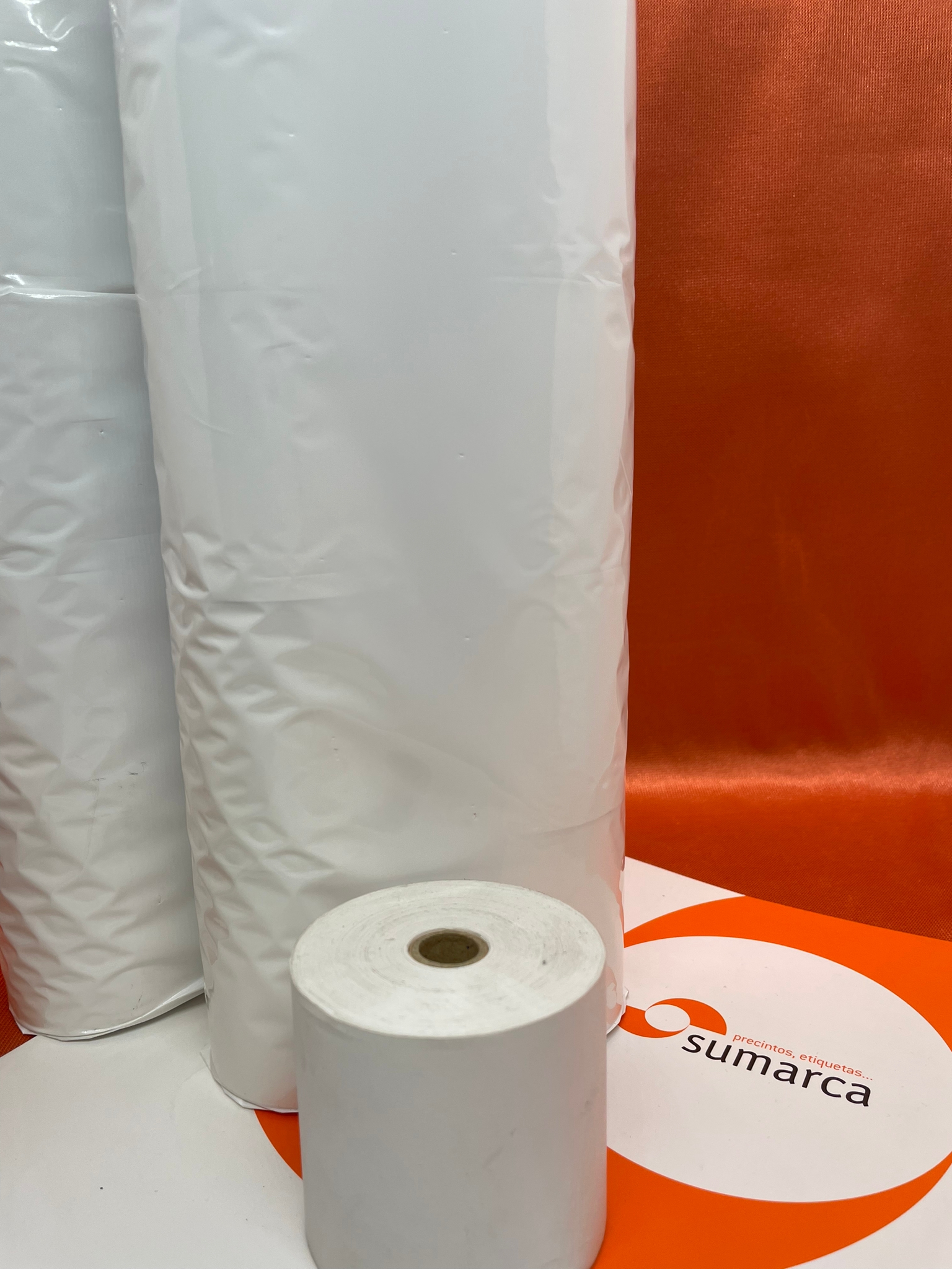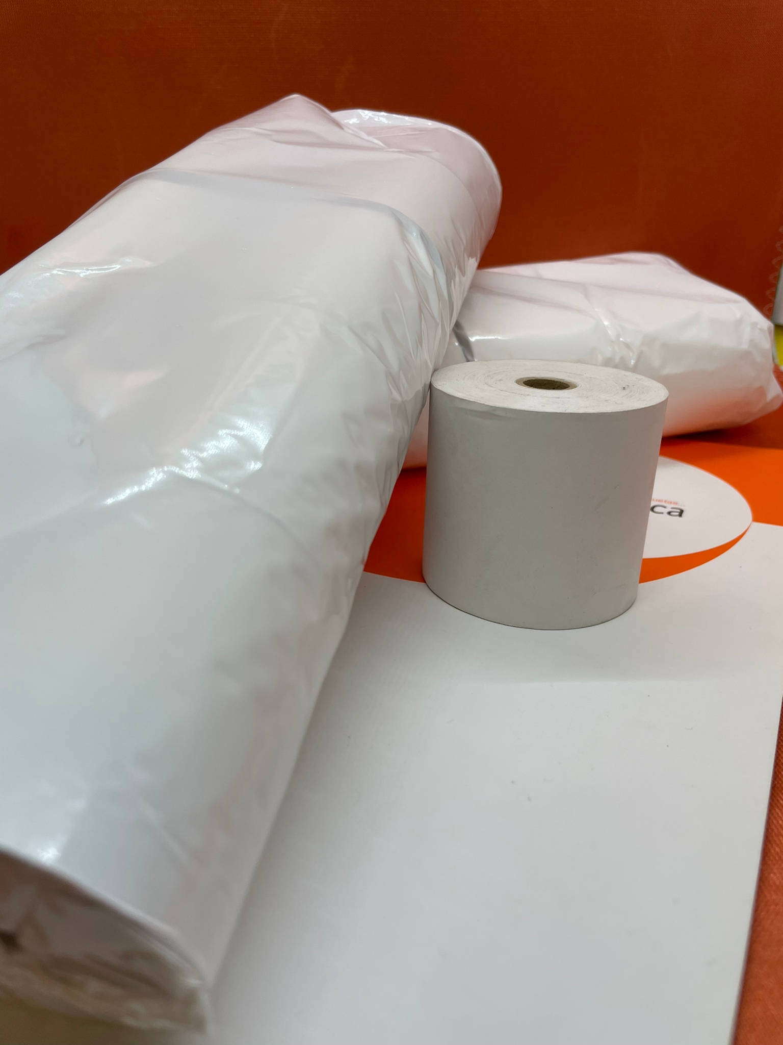 Rollos papel térmico sin BPA, medidas 63x55x12. Presentado en paquetes de 10u.