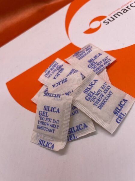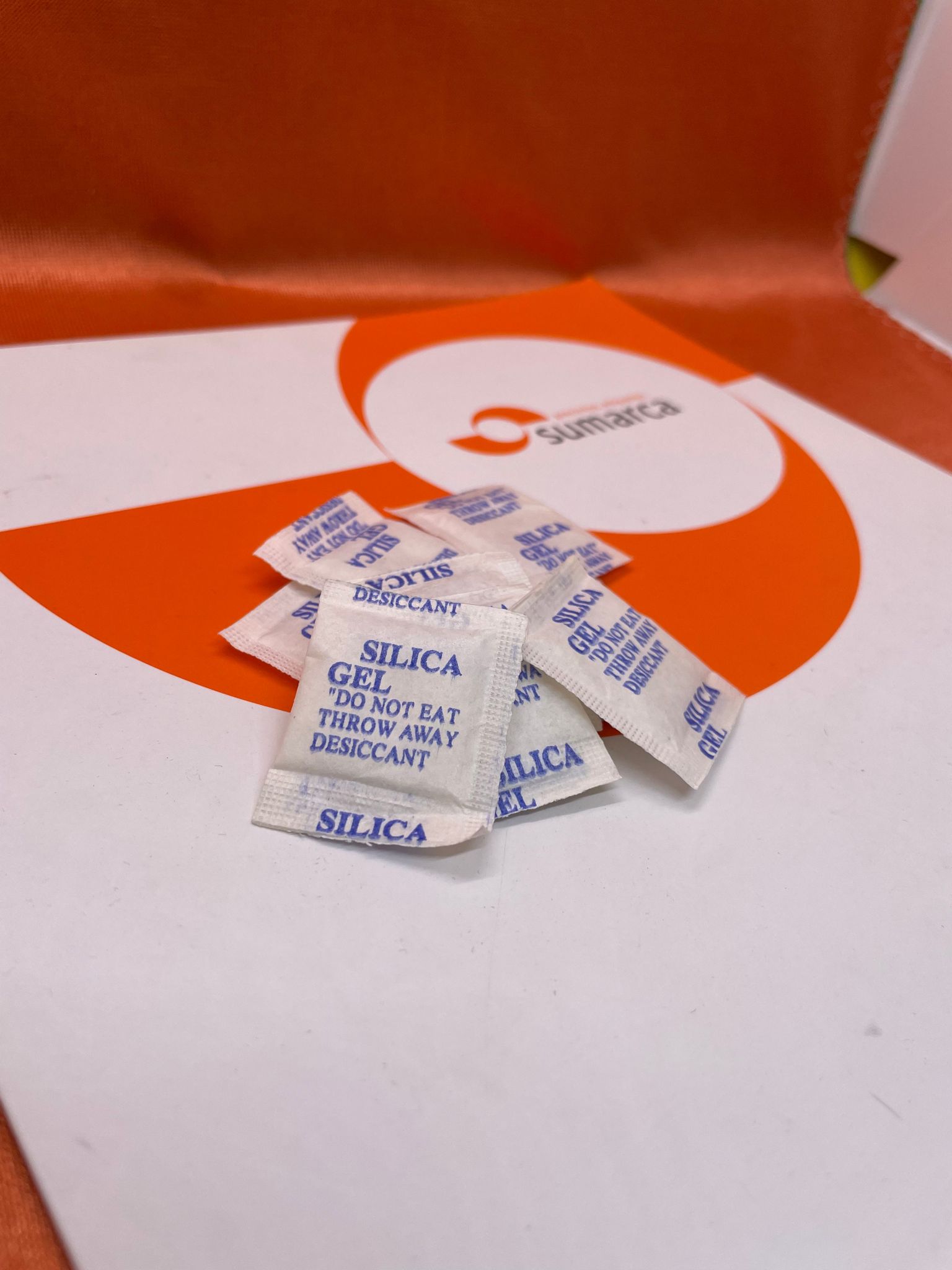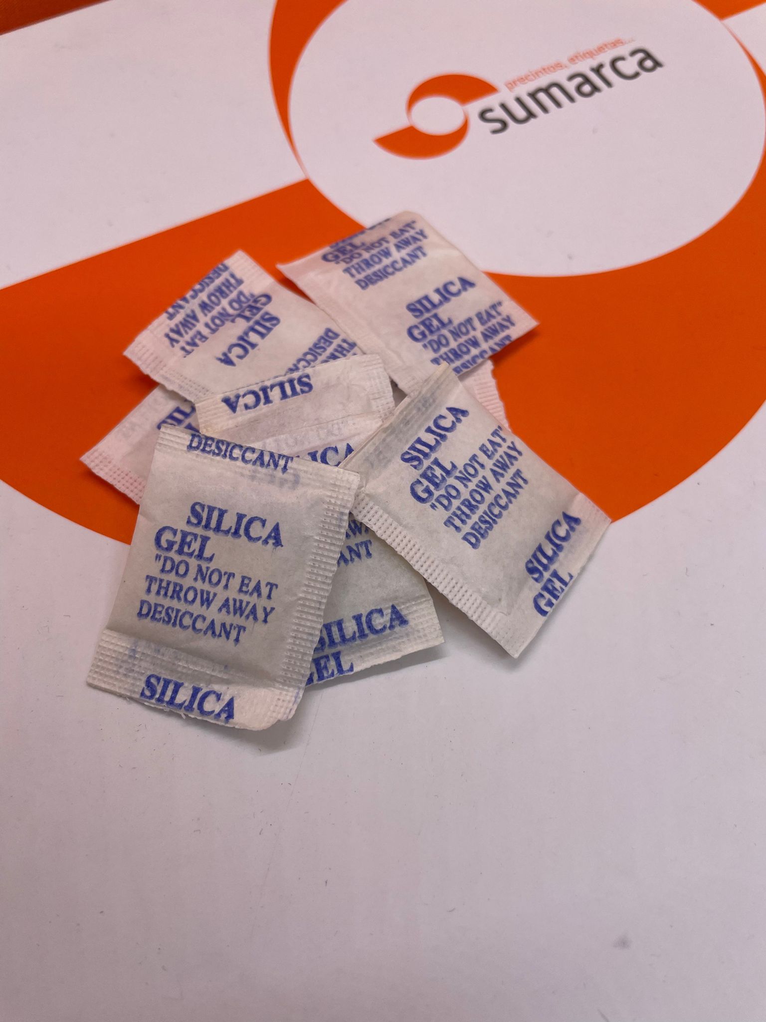 Bolsitas con bolitas de gel de sílice, un descante químico que absorbente de humedad. Perfecto para evitar daños por humedad durante el embalaje o almacenaje.