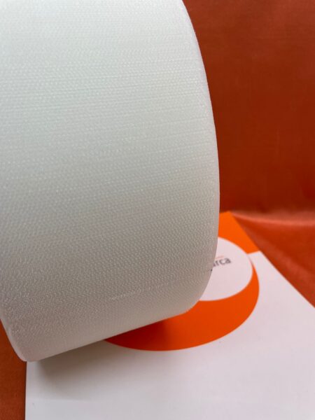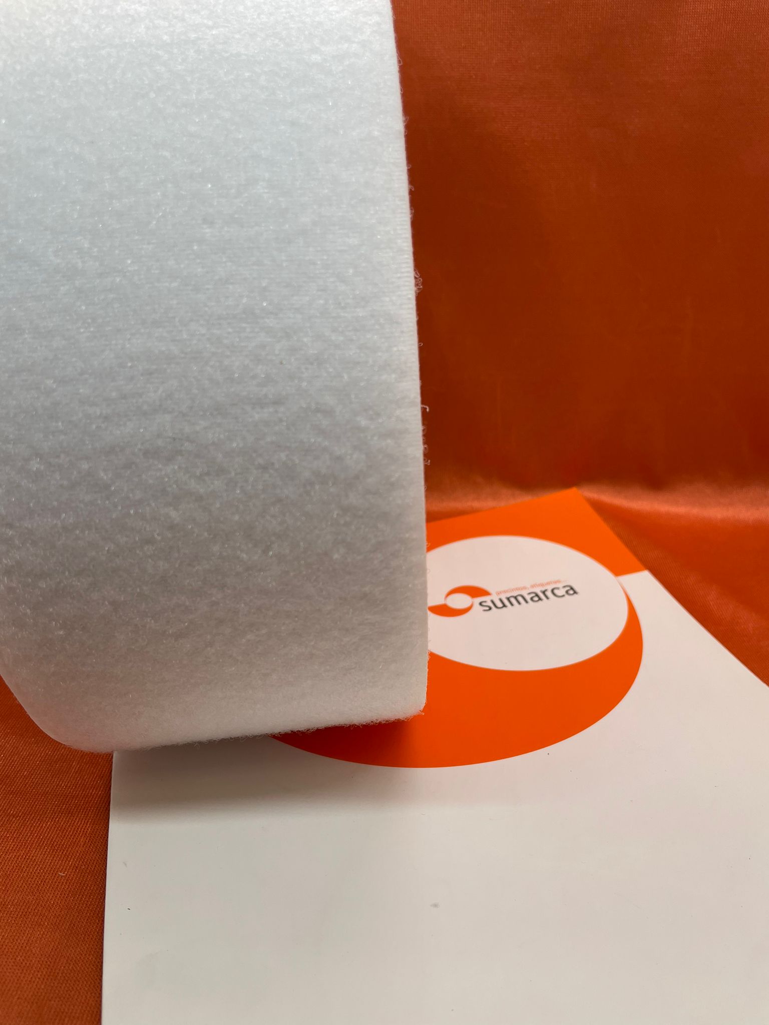 Disponemos de rollos de velcro de cierre, parte suave y parte pincho, color blanco, para la fabricación de sus productos.