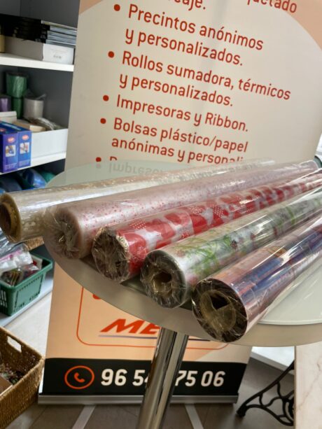Bobinas de papel regalo para expositor, medida 62cm x 200…