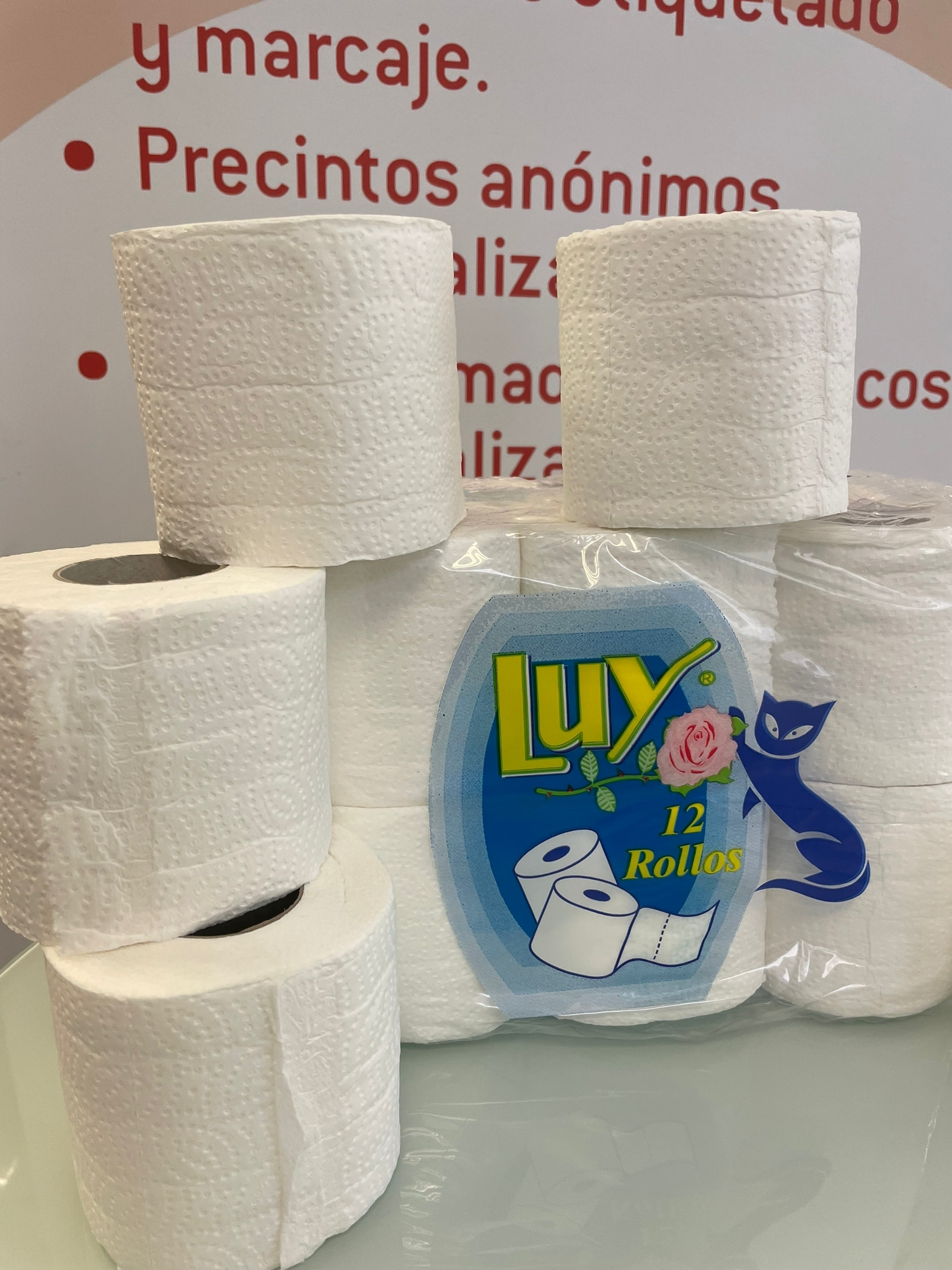 Rollos de papel higiénico doméstico. Paquetes de 12u. Para más…