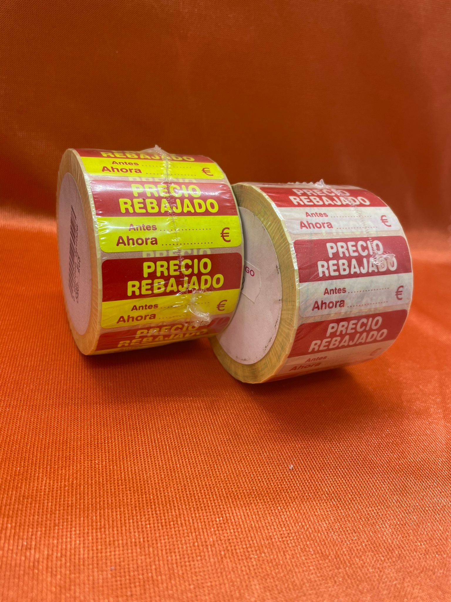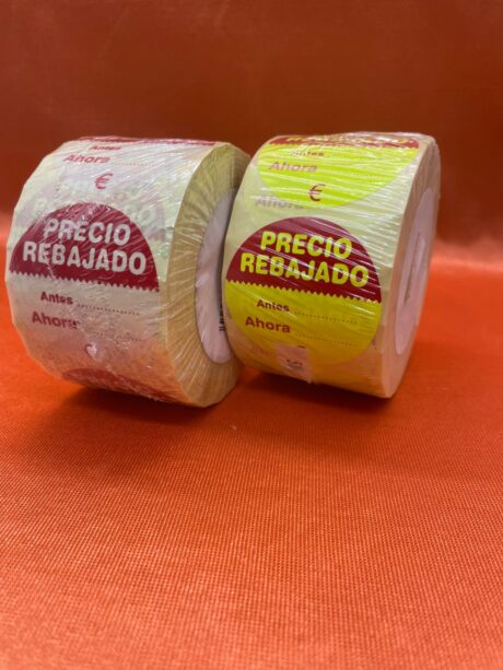 Etiquetas adhesivas «precio rebajado» en rollos. 5cm de diámeto. Para…
