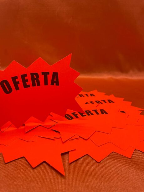 Cartel de oferta animado, de cartón, para tu negocio. 13cmx10cm.…