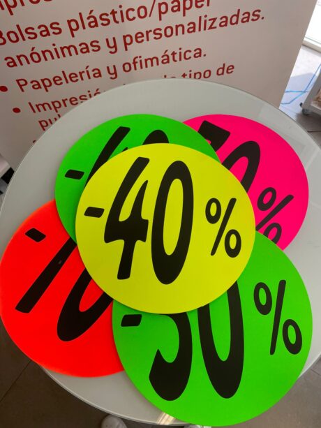 ETIQUETAS ADHESIVAS REDONDAS «DESCUENTO»