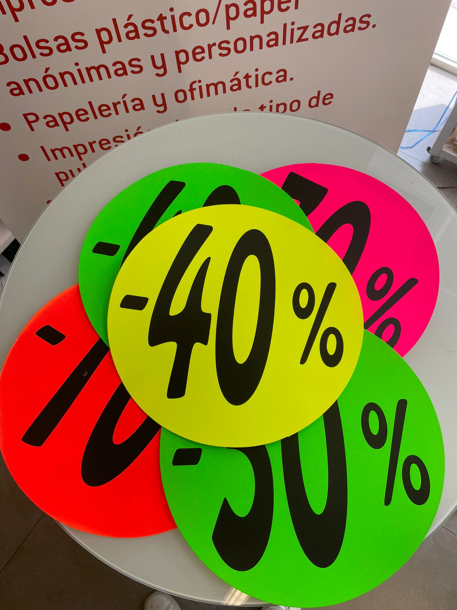 Disponemos de carteles descuentos fluorescentes redondos de distintos colores y…